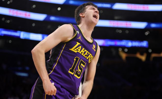 2022-2023赛季,里夫斯开始崭露头角。在詹姆斯和戴维斯受伤的阶段,他临危受命扛起球队进攻大旗,多次在关键时刻命中绝杀或关键球,成为湖人球迷口中的“村曼巴”。那个赛季,他场均能得到13.3分3.0篮板3.4助攻,投篮命中率52.9%,三分命中率39.8%,用高效的表现证明了自己的价值。最关键的是,这一年里夫斯在季后赛不断刷新个人纪录,23年4月17日,客场对阵灰熊,里夫斯连续砍下23分3篮板4助攻,末节一人拿下14分,25日里夫斯在主场砍下23分4篮板6助攻;西决对阵掘金,里夫斯G1砍下23分8助攻,G2再度砍下22分3篮板5助攻,G3战拿下23分7篮板5助攻!这一年的季后赛,里夫斯7次砍下20+,创造落选秀在单次季后赛得到20+次轮的新高。一举奠定了自己在湖人的地位。尽管在季后赛打出准全明星级别的数据,但是里夫斯知恩图报,双向合同到期后,他欣然与湖人签下一份4年5600万的合同,全程没有和其他球队有过合同上的谈判。