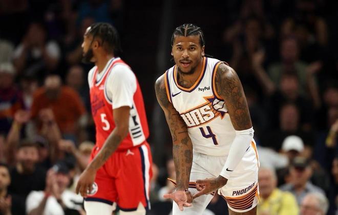 NBA常规赛,太阳坐镇主场迎战快船队。本场比赛之前,快船战绩3胜4负排名西部第9,太阳战绩3胜5负排名西部第10。快船赛季初有些挣扎,阵容太老确实不是好事,比尔、保罗这些老将都快没油了,哈登、小卡打几场又得轮休一场;本场比赛,哈登、小卡两大核心都不会出战。
