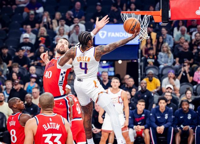 而太阳这边,布克多点开花,格林首秀也相当积极,第一节结束,太阳31-27领先快船4分。